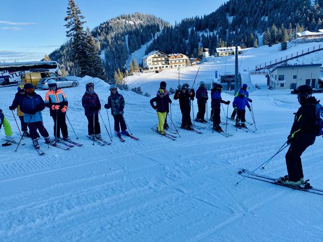 Jeden Tag waren unsere drei Skigruppen sowohl vormittags als auch nachmittags im Skigebiet Hochkar unterwegs. Es wurde bei jedem Wetter (Sonne, Schnee, Nebel) fleißig an unserer Technik gearbeitet, aber natürlich kam Spiel und Spaß auf der Piste nicht zu kurz.