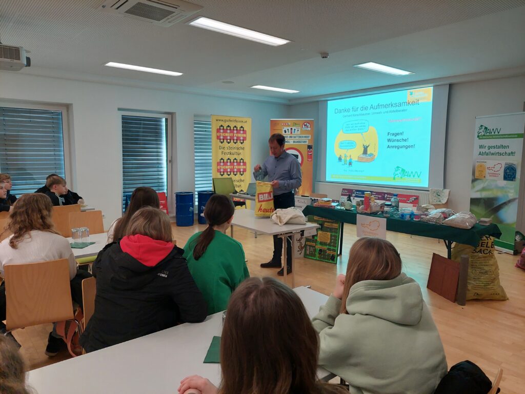 Mitte Februar waren die 3. Klassen zu Besuch auf der Abfallsortieranlage des Abfallwirtschaftsverbandes Hartberg.