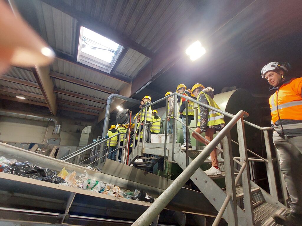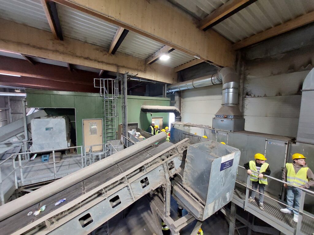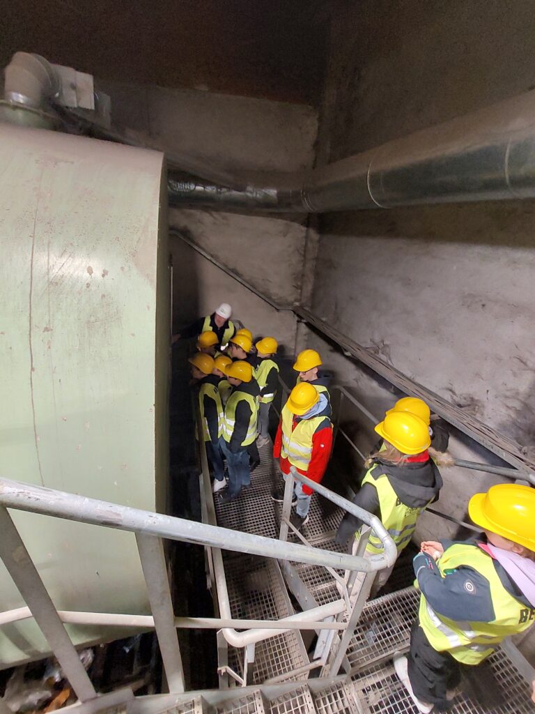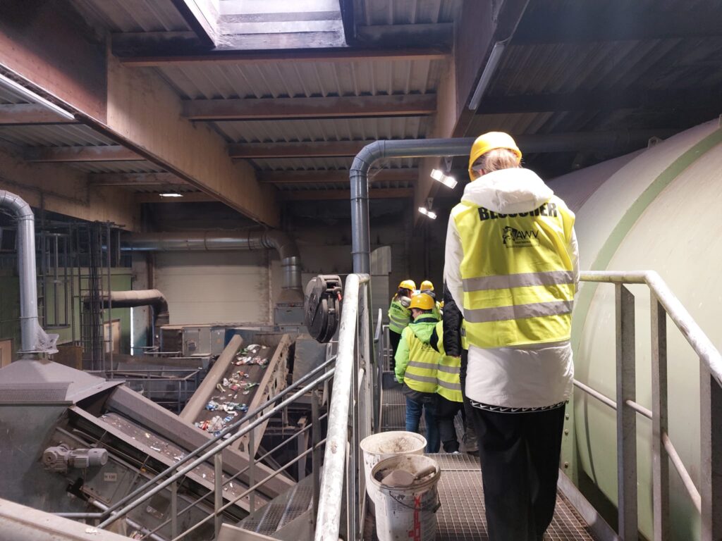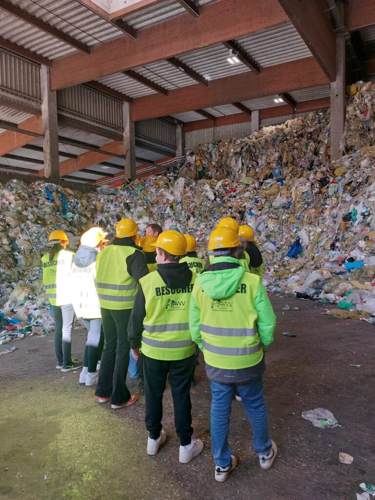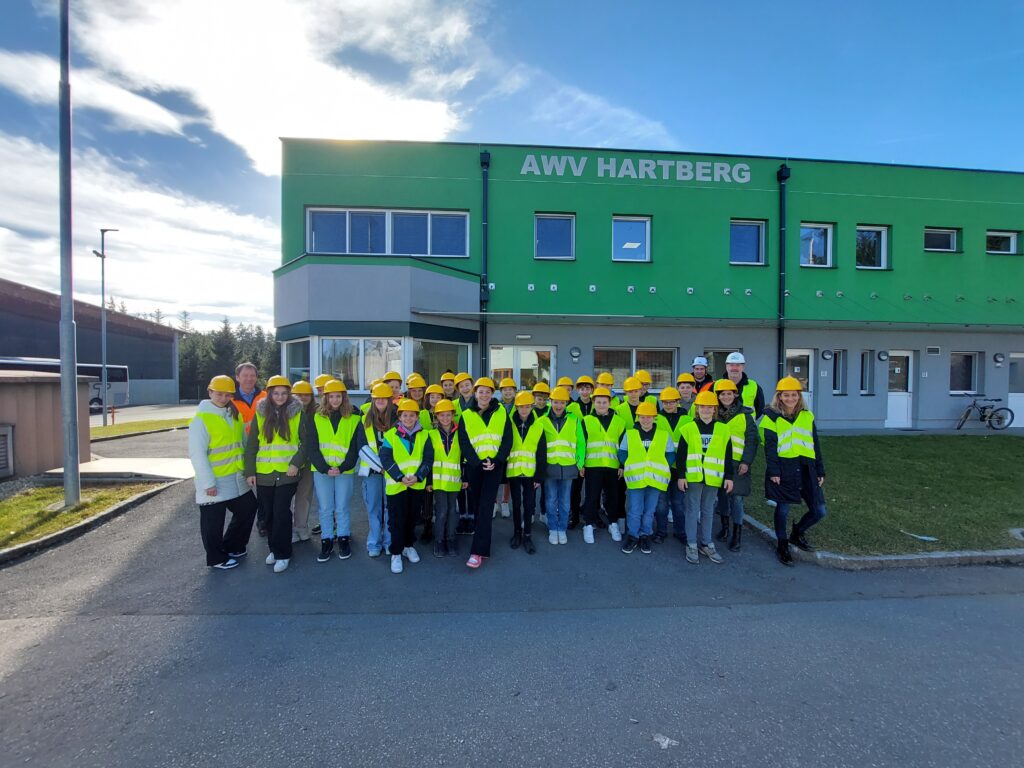 Beim AWV Hartberg besichtigten die Schüler*innen, unter der fachkundigen Führung von Umweltberater Gerhard Kerschbaumer und Betriebsleiter Martin Wappel zuerst die Sortieranlage für den Gelben Sack/Tonne. Auf dieser Sortieranlage arbeiten durchschnittlich 35 Personen, welche die Abfälle / Altstoffe händisch in verschiedene Fraktionen trennen.