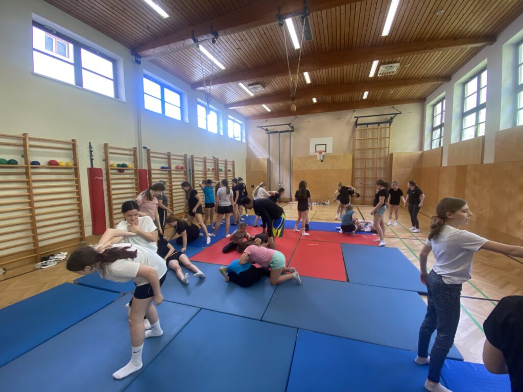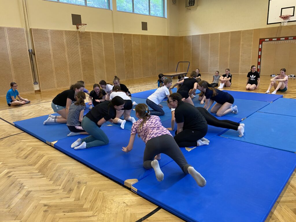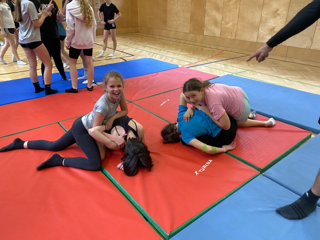 Der Spaß kam aber nicht zu kurz und so wurden beim Abschlussspiel sogar die teilnehmenden Lehrpersonen von den starken Schülerinnen erfolgreich auf den Mattenboden gebracht bzw. geworfen.