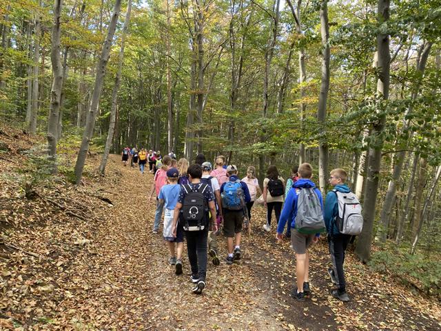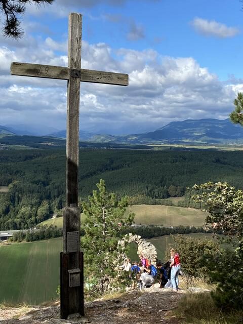 Im September waren die beiden zweiten Klassen gemeinsam mit ihren Lehrerinnen im Bezirk Neunkirchen wandern. Zunächst wanderten die 2ab den steilen Weg zur Burg Seebenstein. Oben angekommen wurde eine kleine Jausenpause eingelegt, bevor es weiter ging Richtung Türkensturz. Dort konnten die Schüler:innen in Kleingruppen die wunderschöne Aussicht bestaunen. Abschließend wurde noch der großzügige Spielplatz in Gleißenfeld besucht, wo die Klassen mit erfrischenden Getränken von Frau Tanzl versorgt wurden. Ein herrlicher Herbsttag!