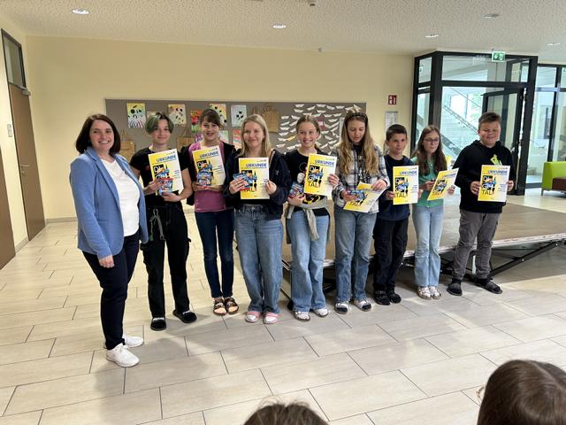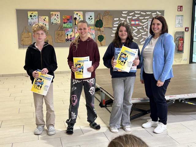 Die feierliche Siegerehrung fand am 26. Mai 2025 in unserer Schule statt und wurde von Vertreterinnen und Vertretern der Raiffeisenbank persönlich durchgeführt.