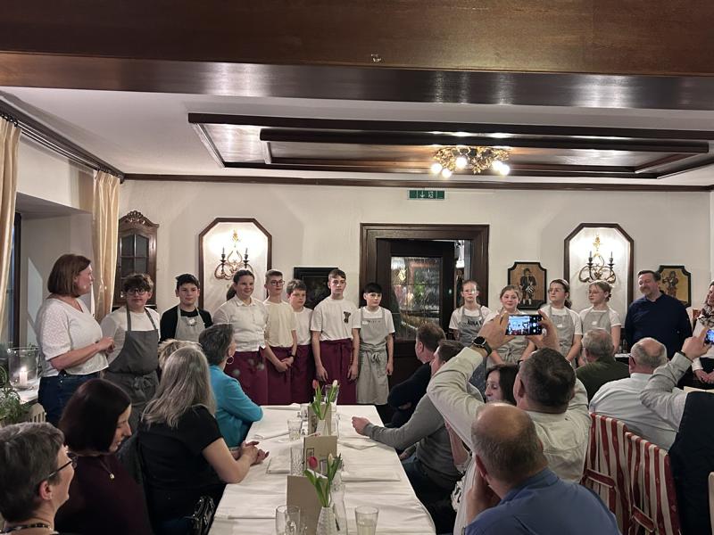 Das Galadinner fand im Gasthaus Hönig statt, wo wir von den Wirtsleuten wie immer tatkräftig unterstützt wurden. Sie stellten uns dankenswerterweise ihre Räumlichkeiten zur Verfügung und standen den Schülerinnen und Schülern mit Rat und Erfahrung zur Seite.