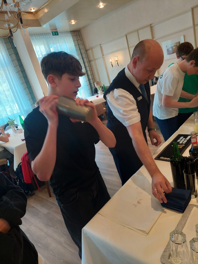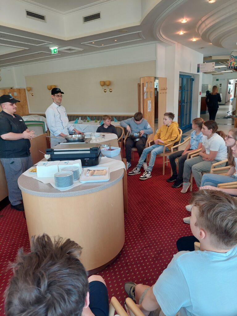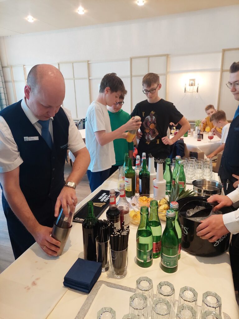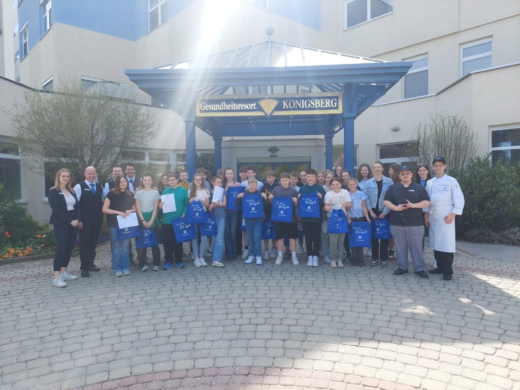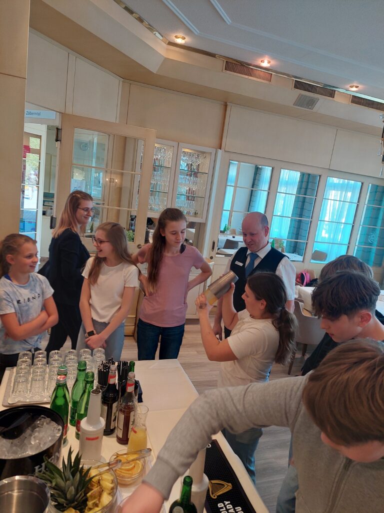 Im Zuge des BO Unterrichts durften die 3. Klassen das Gesundheitsresort Königsberg in Bad Schönau besuchen. Dort wurde uns unter anderem der Therapieraum mit den unterschiedlichen Geräten und Therapiemöglichkeiten gezeigt, aber auch das Restaurant durften wir besichtigen. Uns wurde viel zu den unterschiedlichen Lehrberufen erklärt, welche man im Gesundheitsresort erlernen kann und auch die Praxis kam nicht zu kurz: So durften alle ein wenig beim Schneeschlagen für den Kaiserschmarrn helfen und auch Mocktails wurden unter professioneller Leitung gemixt.