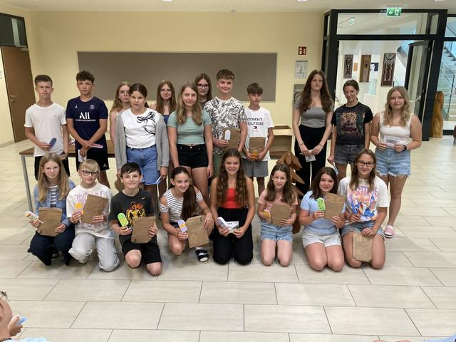 Wie jedes Jahr zum Schulschluss erhalten verdiente Schüler und Schülerinnen kleine Anerkennungen für ihre sprachliche, sportliche und besondere schulische Leistungen.