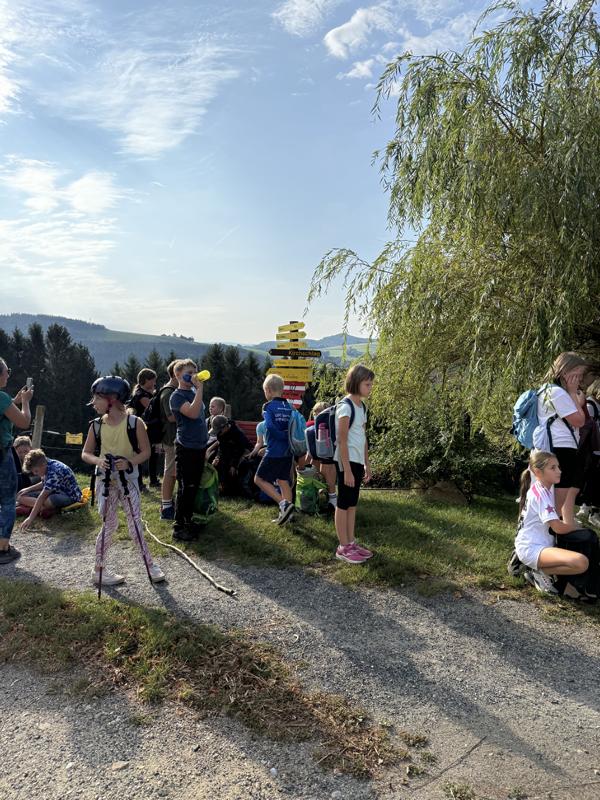 3a/b Klasse: Die dritten Klassen erkundeten auf ihrem Wandertag die reizvolle Umgebung zwischen Kirchschlag und Bad Schönau entlang des „Blicke Wegs“. Im Rahmen des Ausflugs durften die Schülerinnen und Schüler außerdem eine neue Sportart kennenlernen: Padel-Tennis.